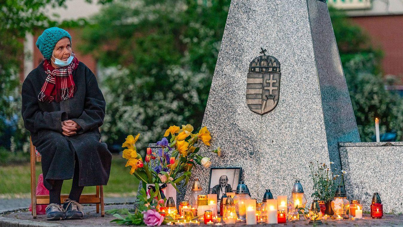 2020.05.04. Barátai és tisztelői búcsúztak Szilágyi Istvántól. A meggyilkolt színész háza melletti téren gyújtottak gyertyákat, mécseseket. A csendes eseményen ott volt a színművész özvegye is. Fotó: Sulyok László / Ripost.
