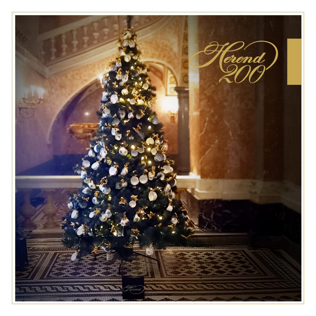 A fenyőfa ragyogását a manufaktúra ikonikus mintái, többek között, mint a Viktória, az Apponyi, a bécsi rózsa és a Rothschild minta teszik varázslatossá.