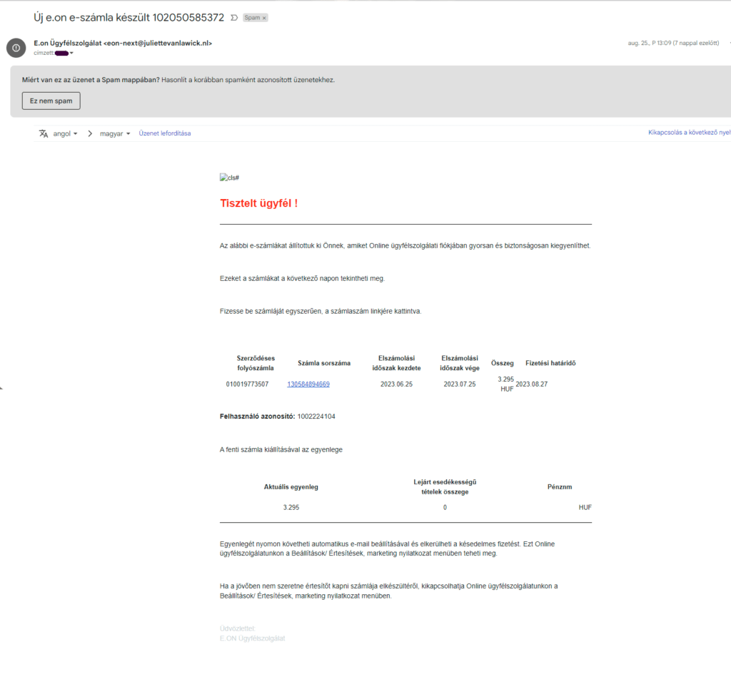 Az E.ON nevében pedig ilyen leveleket küldenek: