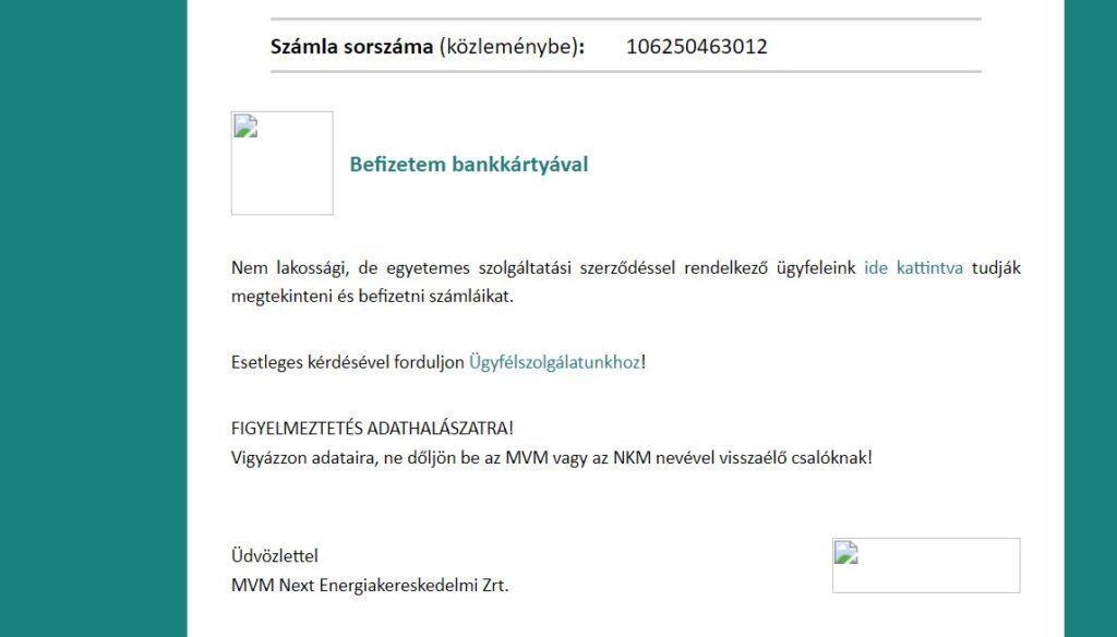 Az MVM Next felhívja a figyelmet, hogy az általuk küldött online számlaértesítők feladója minden esetben az MVM Next online ügyfélszolgálat (ugyfelszolgalat@online.mvmnext.hu).