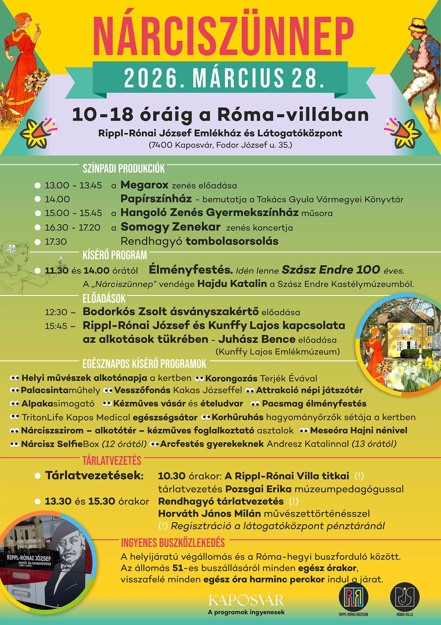 Színes programokkal várják az érdeklődőket a kaposvári Nárciszünnepen, amelyet március 28-án tartanak a Rippl-Rónai Emlékházban és Látogatóközpontban, valamint annak parkjában.